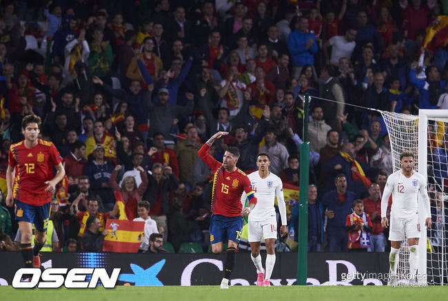 후반 추가 시간이 7분이나 선언됐다. 경기 종료 직전 라모스가 헤더골을 터트리며 결국 경기는 잉글랜드의 3-2 승으로 마무리됐다. /mcadoo@osen.co.kr