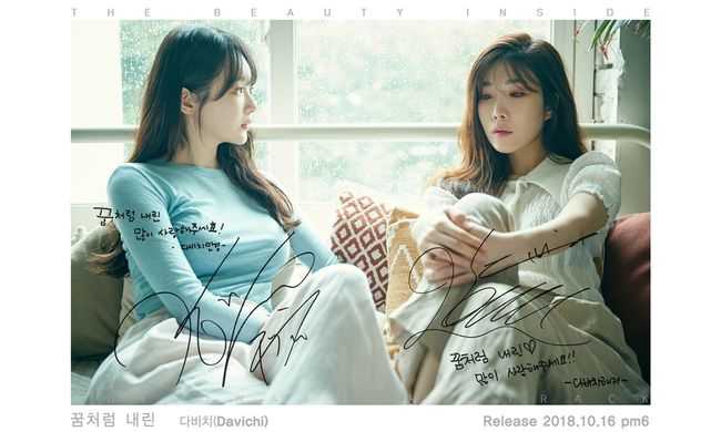 드라마 부문 화제성 1위에 등극한 JTBC 월화드라마 ‘뷰티 인사이드’의 OST, 다비치의 '꿈처럼 내린'이 16일 오후 6시에 발매된다.