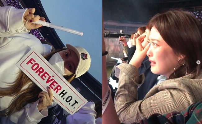tvN '인생술집'에 나와 H.O.T. 팬이라고 밝혔던 배우 정유미와 유인영도 빠질 수 없었다. 정유미는 15일 "촬영 끝나고 부랴부랴! 그때의 나, 그때의 우리. 함께 할 수 있는 추억이 있다는 건 행복한 거야"라는 메시지와 함께 유인영과 나란히 찍은 H.O.T. 콘서트 인증샷을 공개했다.