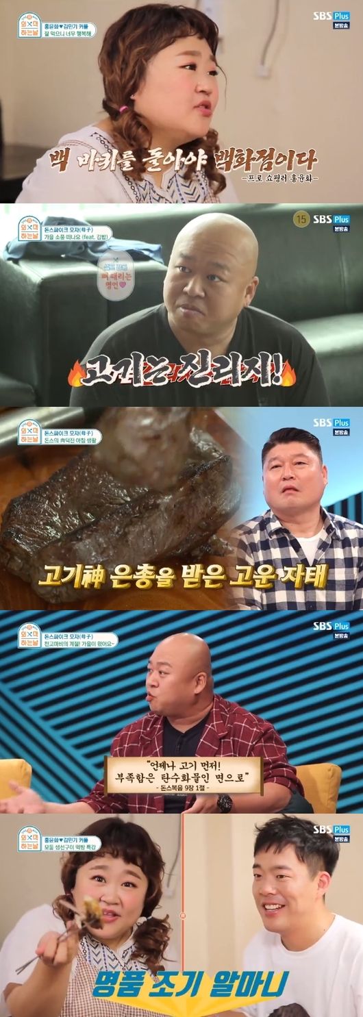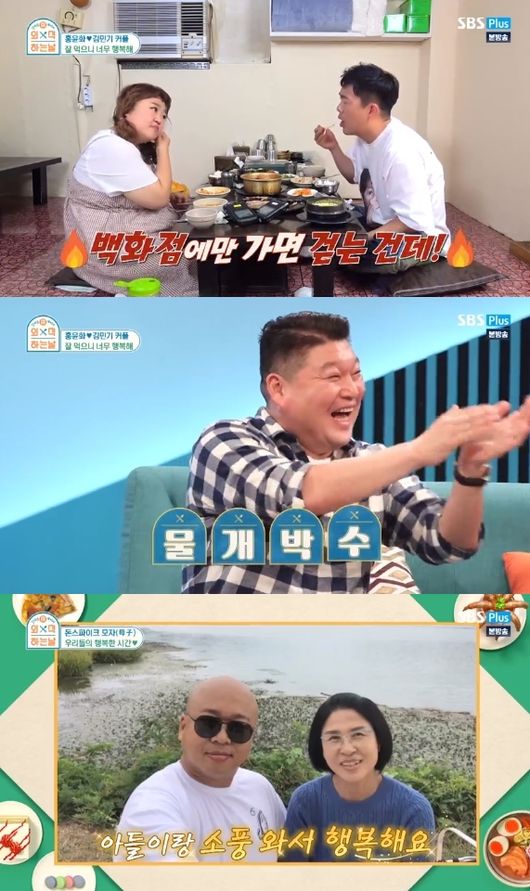 16일 방송된 SBS 플러스 '외식하는날'에서는 홍윤화 김민기 커플, 돈스파이크 모자의 먹방이 그려졌다.