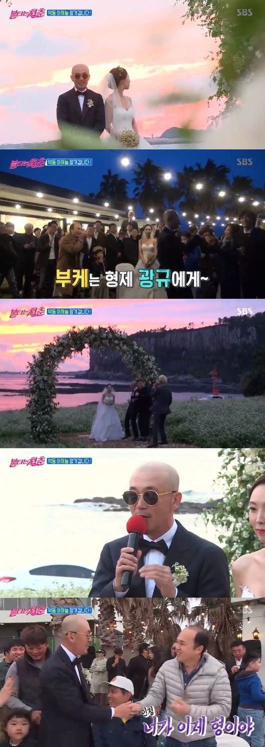 한편 제주도 한 카페에서는 '불타는 청춘' 이하늘의 결혼식이 진행됐다. 이하늘은 진지한 신랑이자 멋진 남편으로 스몰웨딩을 진행했다. 이 자리에는 김광규, 최성국, 구본승 등 이하늘을 축하하기 위한 '불타는 청춘' 멤버들이 참석했다. 김광규는 "이제 네가 형이다"라고 말하며 축하를 건넸다.