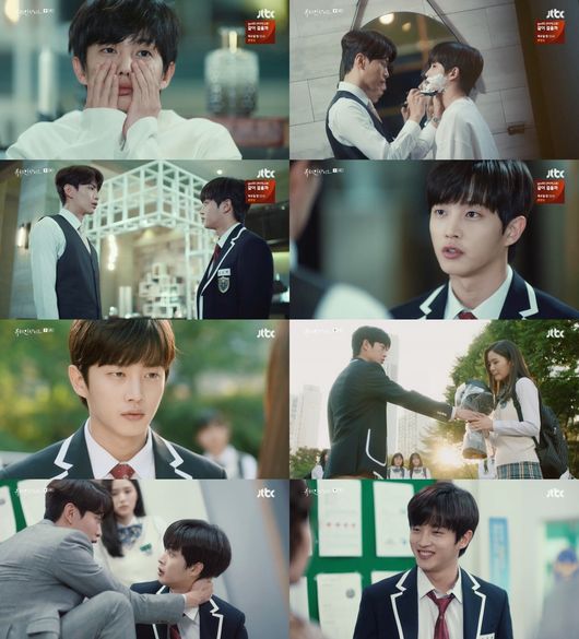 극 중 한 달에 일주일 타인의 얼굴로 살아가는 톱스타 한세계(서현진 분)는 지난 방송에서 풋풋한 고등학생 소년의 모습으로 변했다. NEW 한세계(김민석 분)와 서도재(이민기 분)가 한 침대 위에 있던 모습은 파격 오해(?)를 불러일으키며 스펙터클한 첫 등장을 알렸다.