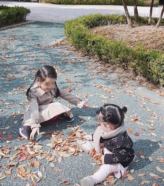 사진 속 하은-소은은 낙엽 위에서 즐거운 한 때를 보내고 있다. 폭풍 성장한 두 아이의 모습이 사랑스럽다.