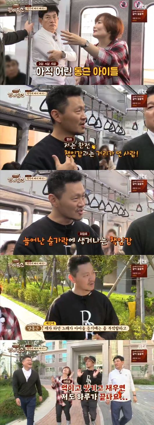 이어 "내가 하던 노래가 아이들이 듣기에 부정적이고 선정적이었다. 그런데 결혼 후 긍정적인 가사를 쓰다 보니 좋더라"고 했다. 이에 박경림은 "동근이 노래는 처음부터 끝까지 욕이었다"고 말해 모두를 폭소케 했다.