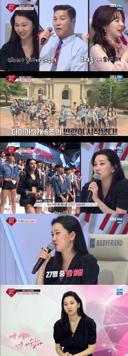 지난 17일 방송된 SBS플러스 '슈퍼모델 2018 서바이벌'에서는 2차 예선 평가가 진행됐다. 지원자 1,600명 중 1차 예선을 통과한 169명은 6개의 조를 나눠 조별 미션인 ‘썸머 무빙 화보’로 2차 예선을 치렀다.