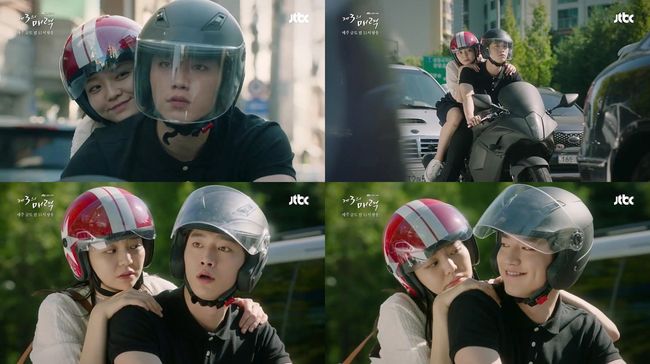 “떨리지? 전문 모델도 아니고 헤어 디자이너인데 당연히 떨리지. 너 힘들면 얘기해”라며 영재를 걱정하던 준영과 그런 준영이 사랑스럽다는 듯 애교 섞인 목소리로 “알았어”라고 대답하는 영재. 준영은 늘 그렇듯 영재를 챙겼고, 영재는 그런 준영의 배려를 사랑스럽게 바라봤다. 그렇게 영재를 태우고 달리던 오토바이, 하지만 꽉 막힌 도로에서 앞으로 나가지 못하게 됐다. “우리도 앞으로 슬슬 나가볼까”라는 영재의 재촉에도, “야 안돼. 도로교통법상 벌점 40점이야”라던 준영의 대응은 달라서 더 매력적인 이들 커플의 캐릭터를 고스란히 드러낸다.
