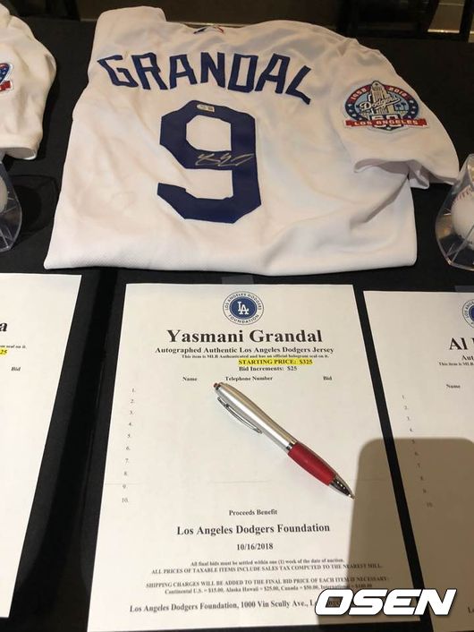 다저스가 운영하는 재단에서는 선수들에게 유니폼을 기부 받아 팬들에게 경매로 팔고, 그 이익금을 사회에 환원하는 좋은 일을 한다. 선수들은 기꺼이 사인한 자신의 유니폼을 내놓으며 사회봉사활동에 참여하고 있다. 그랜달이 내놓은 유니폼도 325달러에 나와 주인을 기다리고 있었다. 경매는 유니폼을 원하는 팬들이 리스트에 이름과 가격(25달러 단위)을 적어내는 방식으로 진행된다.