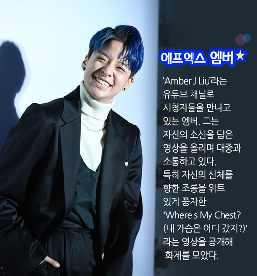 ‘Amber J Liu’라는 유튜브 채널로 시청자들을 만나고 있는 엠버. 그는 자신의 소신을 담은 영상을 올리며 대중과 소통하고 있다. 특히 자신의 신체를 향한 조롱을 위트 있게 풍자한 'Where's My Chest? (내 가슴은 어디 갔지?)'라는 영상을 공개해 화제를 모았다. 그는 BBC코리아와의 인터뷰에서 “제가 제기한 문제들이 여러 사람이 겪는 문제고 그 문제를 겪는 이들이 혼자가 아니라는 것, 이런 분위기를 조성할 수 있었다는 게 좋다”고 밝히기도 했다.