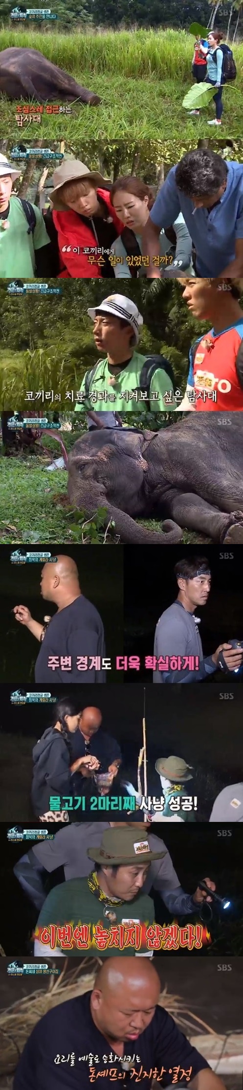 이날 방송은 코끼리 정글에서의 마지막 이야기가 전파를 탔다. 멤버들은 계속된 배고픔에 먹을거리 찾기에 나섰고, 그 중 돈스파이크가 수제 릴 낚싯대 제작에 돌입했다. ‘낚시 구력 14년’이라는 돈스파이크는 ‘족장’ 김병만의 지원 아래 낚싯대로 실제 낚시까지 시도했지만 결국 실패해 웃음을 자아냈다.