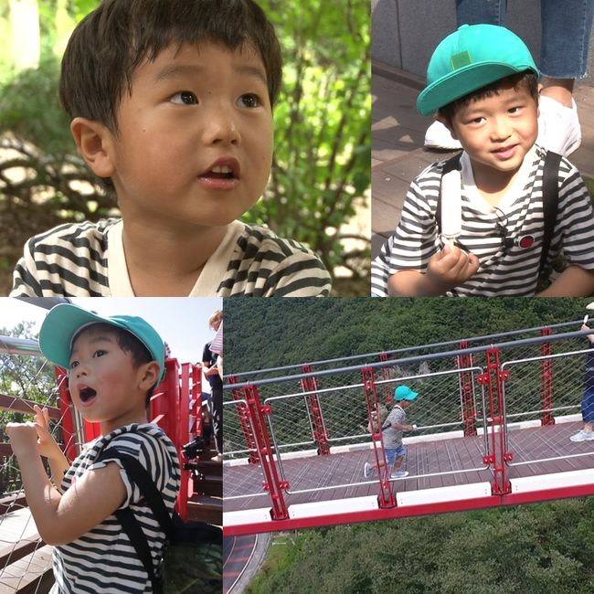 공개된 사진 속 승재는 푸른 산 속에 자리잡은 출렁다리 앞에 서 있다. 한 눈에 봐도 눈이 핑핑 돌 정도로 높은 곳에 위치한 출렁다리 위에서도 망설임 없이 두 눈을 초롱초롱 반짝이는 승재의 모습이 흐뭇함을 자아낸다. 다른 사진에서는 승재가 아빠 도움 없이 홀로 씩씩하게 출렁다리를 건너고 있어 대견하다.