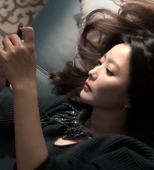 공개된 사진 속 김희선은 검은 색 의상을 입고 누워서는 휴대폰을 무표정하게 바라보고 있다. 변함없이 아름다운 미모가 눈길을 사로잡는다.