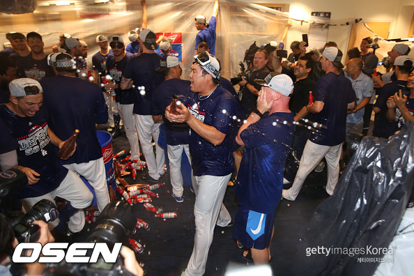 7차전 동료들의 힘으로 다저스가 월드시리즈 진출을 확정지었다. 클럽하우스에서 광란의 샴페인 파티가 벌어졌다. 평소 파티에 소극적이었던 류현진도 이날만큼은 달랐다. 동료들의 얼굴에 맘껏 샴페인을 뿌리면서 그간 쌓인 감정까지 훌훌 털어내는 모습이었다.