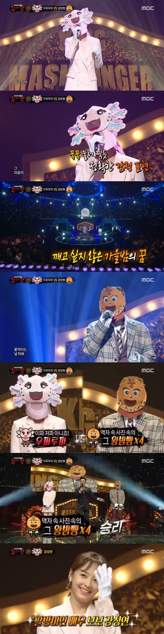2라운드 두 번째 무대에는 우파루파와 왕밤빵이 올랐다. 우파루파는 이소라의 '처음 느낌 그대로'를, 왕밤빵은 전람회의 '꿈속에서'를 열창하며 관객들을 사로잡았다. 3라운드 진출자는 68대 31로 승리한 왕밤빵이었다. 아쉽게 3라운드 진출에 실패한 우파루파는 가면을 벗었다. 그의 정체는 보보 강성연이었다.