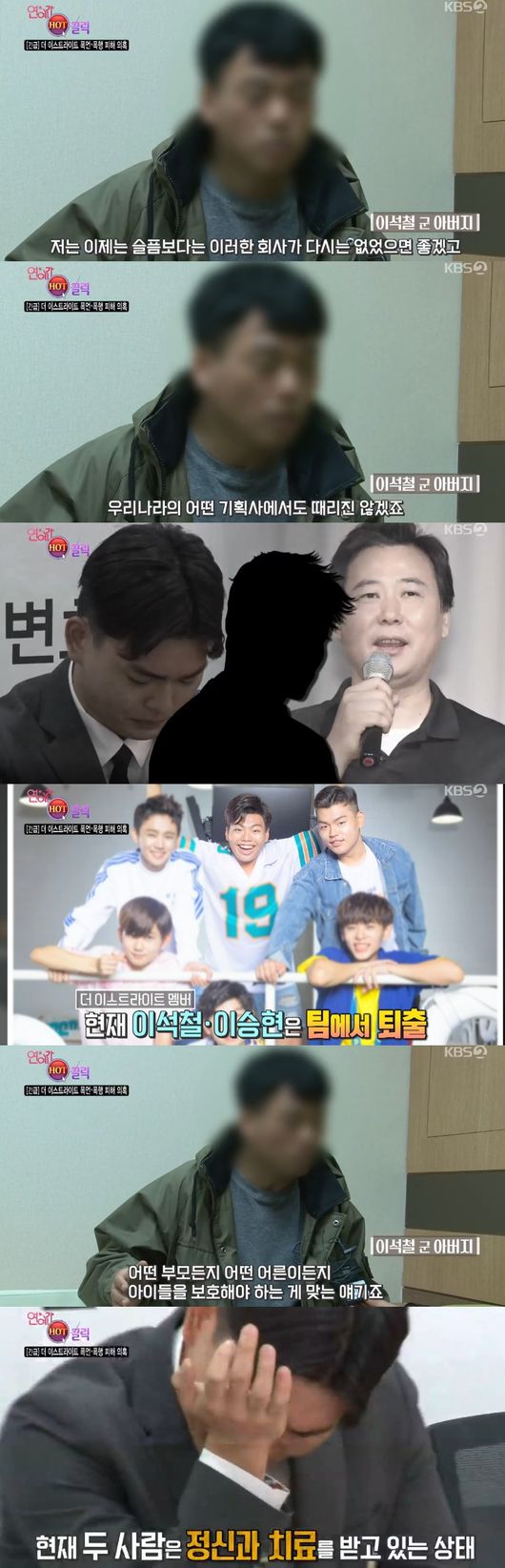 이석철은 "015년부터 2017년까지 약 4년 가까이 미디어라인 엔터테인먼트 문영일 피디로부터 지하연습실, 녹음실, 스튜디오, 옥상 등에서 야구방망이와 몽둥이, 철제 봉걸레자루 등으로 '엎드려뻗쳐'를 당한 상태로 엉덩이를 여러 차례 상습적으로 맞았고, '집에 가서 부모님께 알리면 죽인다'는 협박도 상습적으로 받았다"라고 밝혔다. 그러면서 멤버 이승현은 폭력의 트라우마로 정신과 치료를 받고 있다고 밝혔다.