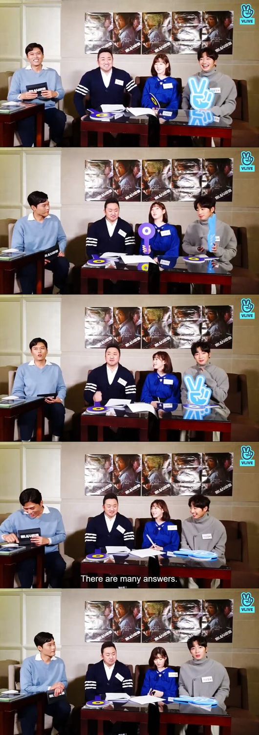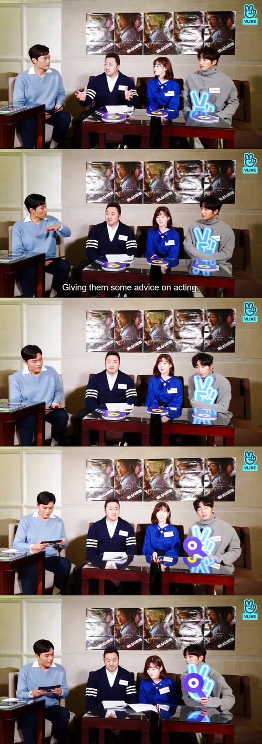 마동석은 김새론, 이상엽이 아닌 이번 작품에 출연한 배우 진선규의 첫인상에 대해 언급하기도 했다. 그는 "여기 있는 사람들의 첫인상과 성격은 같다고 본다. 영화에 나오는 진선규 씨가 엄청난 아우라를 풍기면서 강렬한 악역으로 나온다. 그런데 사실 진선규는 천사다. 너무 착하고 순둥이다. 얼굴과 매치가 안 될 거다"라고 말해 영화에 대한 궁금증을 높이기도 했다.