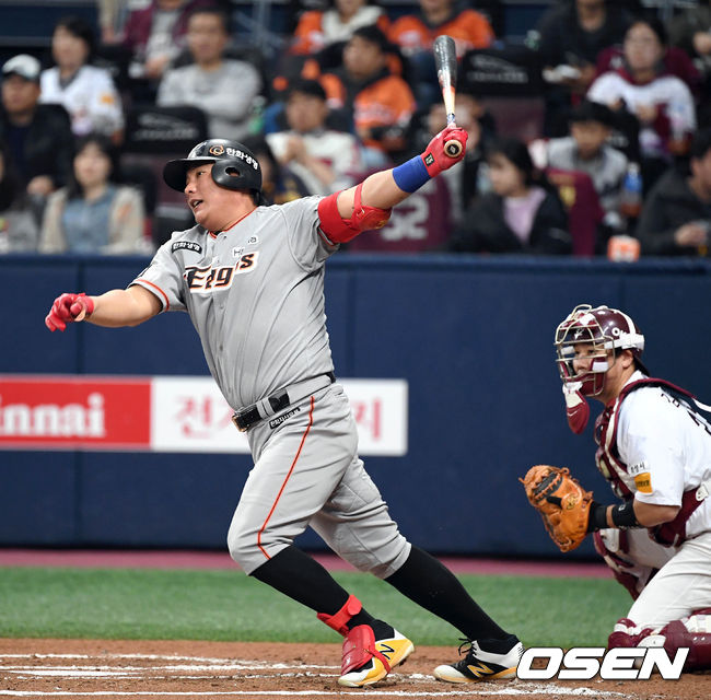 0-0으로 맞선 2회초 무사 1루에 타석에 들어선 김태균은 넥센 선발 투수 제이크 브리검의 슬라이더를 공략해 좌익수 앞에 떨어지는 안타를 만들어냈다. 김태균의 이번 포스트시즌 첫 안타.