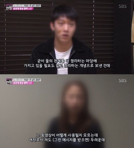 최종범 씨는 구하라의 주장에 맞섰다. 그는 얼굴과 이름을 밝히기로 결정하고, “당시 흥분한 상태에서 구하라에게만 전송한 것일 뿐 유포할 의도는 없었다”며 억울하다는 입장을 내놨다. 최종범 씨는 SBS ‘한밤’ 등 연예정보프로그램에 직접 등장, “사생활 동영상을 보낸 이유는 내가 원해서 찍은 것도 아니다. 내 휴대폰으로 구하라가 찍은 것이고, 굳이 관계를 정리하는 마당에 가지고 있을 필요도 없고 정리하는 개념으로 보냈다”고 해명했다.