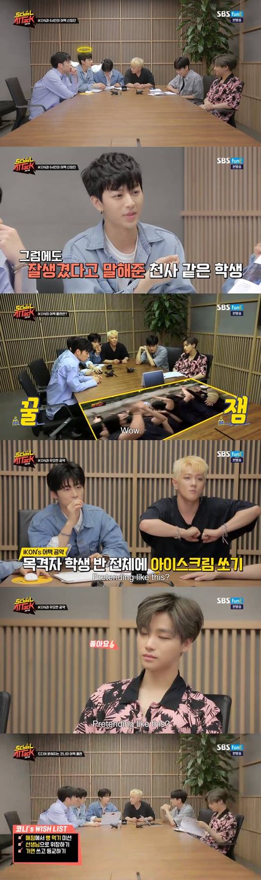 아이콘은 먼저 '스쿨어택'을 통해 어떤 방법으로 학생들을 만날지 먼저 의논했다. 개인 스케줄로 빠진 바비를 제외하고 6인의 멤버가 모였다. 멤버들은 "바비는 그냥 우리가 하는 거 따르면 된다"라며 강력한 한방을 날려 웃음을 주기도 했다.