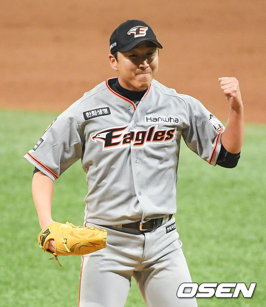 그리고 9회초 김태균의 적시타가 터졌다. 이제 정우람에게 공이 넘어왔다. 정우람은 선두타자 김재현을 범타 처리한 뒤 서건창에게 빗맞은 안타를 허용했다. 하지만 침착했다. 이후 송성문을 1루수 땅볼로 유도해 1루 선행주자를 2루에서 잡아냈다.
