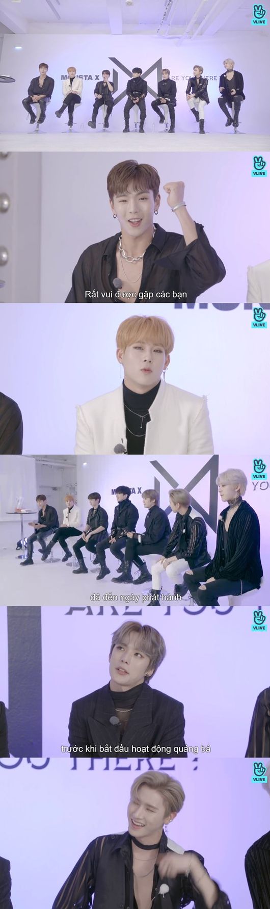 그룹 몬스타엑스가 돌아왔다. 더 강렬해진 음악과 확장된 세계관으로. 몬스타엑스는 22일 오후 11시부터 포털사이트 네이버 V라이브를 통해서 몬스타엑스 컴백 V라이브 '아 유 데어(ARE YOU THERE)'를 진행했다.