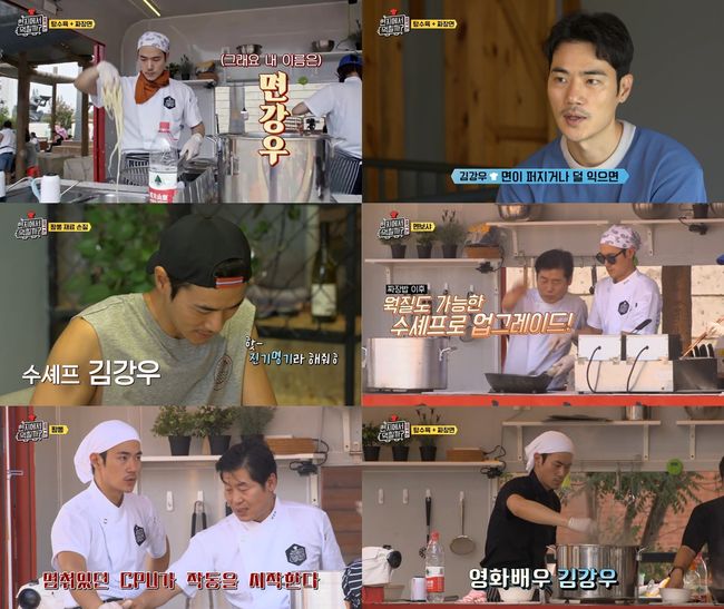 특히, 김강우는 메인 셰프인 이연복의 짜장 소스가 완성되는 타이밍에 맞춰 면발을 삶아내 이연복의 칭찬을 받는 것은 물론 맨손으로 뜨거운 면을 건져내는 등 프로페셔널한 요리사의 모습을 보이기도 했다.