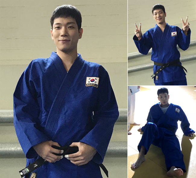 23일 소속사 제이알 이엔티가 공개한 촬영 비하인드컷 속 김경남은 보안팀 제복이 아닌 푸른색 유도복을 입은 모습이다. 지난 방송에서 유도 국가대표 출신의 보안팀 후배 나영주(이수경 분)와 유도 대결을 펼친 오대기의 촬영장 뒷모습인 것.