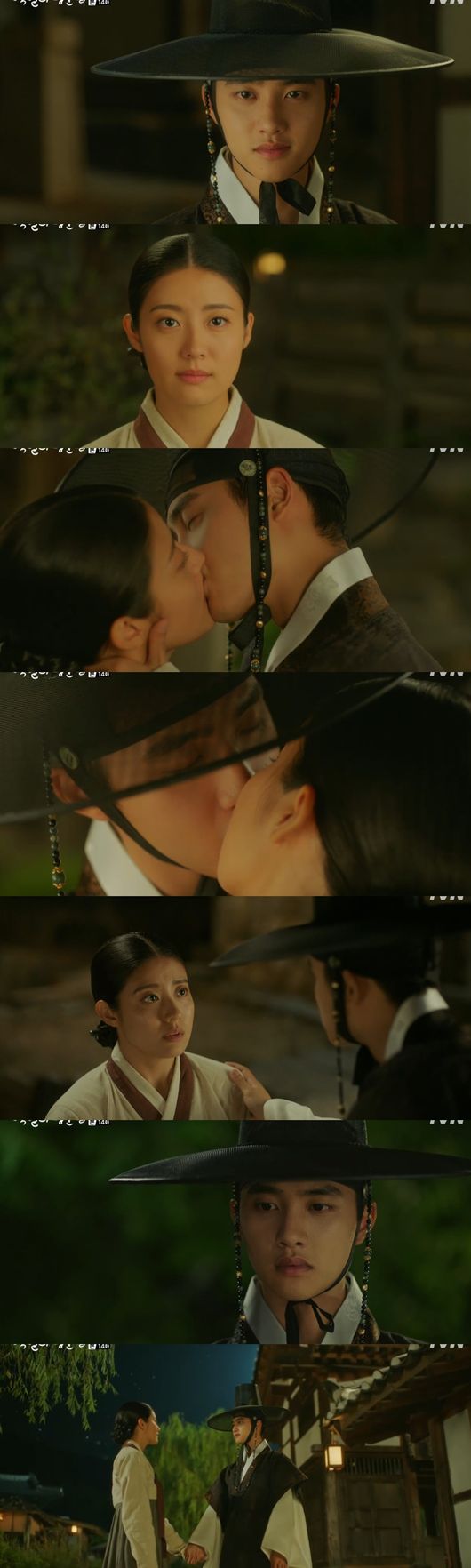 23일 방송된 tvN 월화드라마 '백일의 낭군님'에서 원득(도경수)이가 홍심(남지현)을 찾아 궁 밖으로 몰래 나왔다.