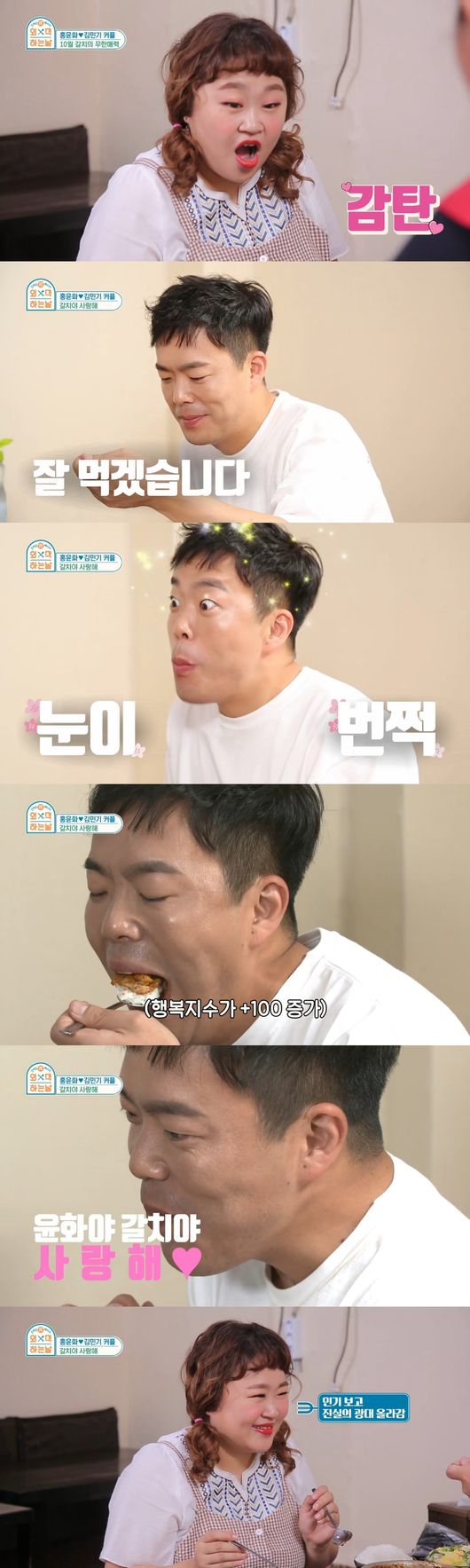 개그맨 홍윤화와 김민기 커플이 갈치조림을 먹으며 평소보다 서로를 더 챙기는 모습을 보여줬다.