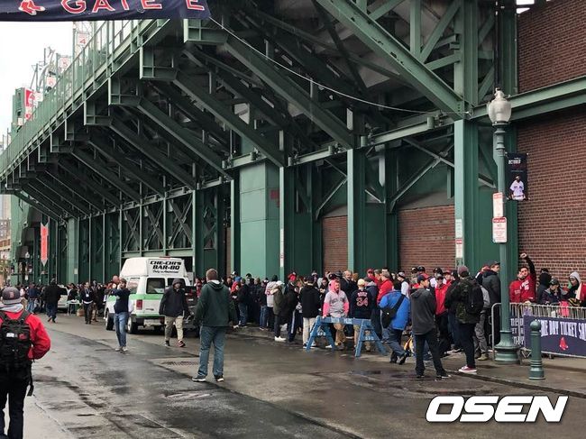한편 야구팬들은 우천에도 아랑곳하지 않고 경기시작 5시간 전부터 주변에서 진을 치고 입장을 기다리고 있다. 표를 구하지 못한 팬들에게 암표상들도 극성을 부리고 있다. 현재 500달러를 줘도 가장 싼 좌석을 구하기가 쉽지 않은 상황이다. 펜웨이 파크 주변의 레스토랑이나 스포츠바도 이미 좌석이 매진돼 ‘월드시리즈 특수’를 누리고 있다. / jasonseo34@osen.co.kr