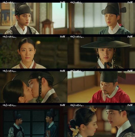 한편 무연(김재영 분)의 뒤를 쫓다가 살수에게 위협을 당한 홍심. 궁으로 돌아가던 율은 홍심을 구해냈고 그녀의 손을 잡고 나란히 걸었다. “이렇게 계속 나란히 걸으면 얼굴은 언제 봅니까”라는 홍심의 귀여운 투정에 두 사람은 서로를 한참 바라봤다. 함께 통과하면 영원히 헤어지는 일이 없다는 애완문 앞에서도 손을 놓지 않았다. “나는 널 처음 본 순간부터 마음에 담았다. 나는 만나지 못한 너의 스무 살을 사랑했다. 그리고 앞으로 남은 너의 수많은 날들을 사랑할 것이다”라는 율의 절절한 고백과 함께. 율은 여전히 자신을 “저하”라고 부르는 홍심에게 “지금 네 앞에 있는 이는 세자가 아니다. 원득이다”라며 다정하고 박력 있게 입을 맞췄다.
