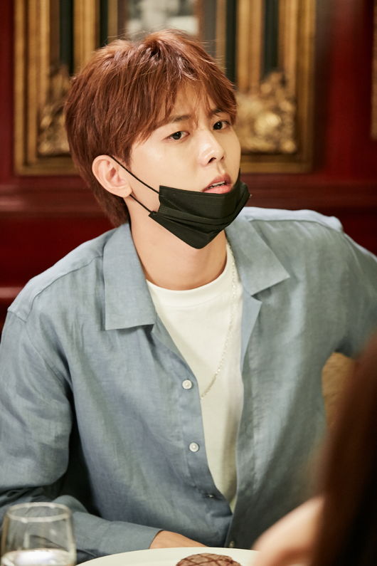 특히 극 중 제작발표회에 참석한 그의 진지한 눈빛과 시선을 집중시키는 비주얼이 탄성을 자아낸다. 또한 내추럴한 의상에 마스크로도 가려지지 않는 독보적인 존재감을 발산한다.