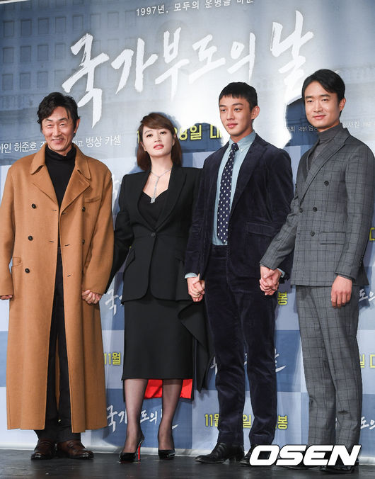 '국가부도의 날' 주연 배우 김혜수, 유아인이 영화 개봉을 앞두고 작업을 하면서 느낀 점을 고백했다.