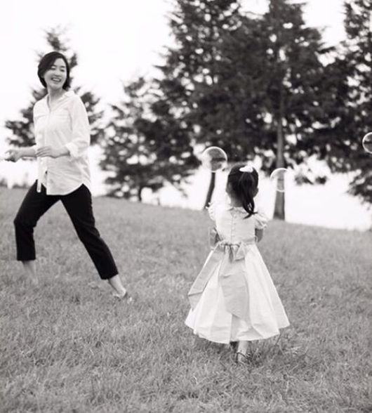 공개된 사진 속 박진희는 첫째 딸과 야외에서 행복한 시간을 보내고 있다. 마주 바라보며 웃음을 터트리거나 풀밭을 뛰어다니는 모습이 인상적.