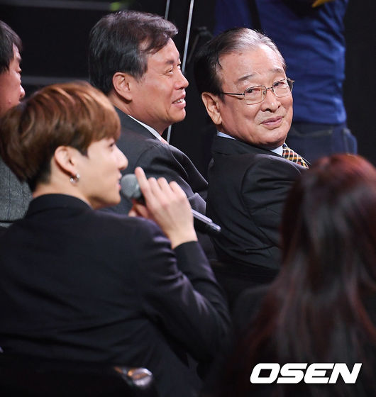 가장 마지막으로 수훈문화훈장을 받은 이순재도 방탄소년단에게 축하의 인사를 건넸다. 그는 진지한 소감 후 "난 방탄소년단이 전투복 입고 노래하는 줄 알았다. 너무 잘생겼다. 너무 아름다운 대한민국의 자랑이다. 절대로 방탄조끼 안 입어도 되겠다"며 흐뭇한 미소를 머금었다. 무대 아래에 있던 방탄소년단은 자리에서 일어나 감사의 인사를 전했다.