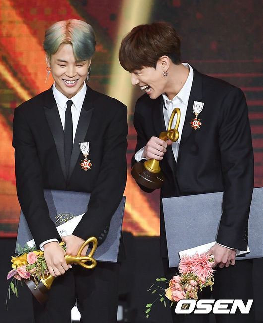 막내 정국은 "존경하는 선생님들과 함께 수상하게 돼 영광이다. 저희에게는 아직 과분한 상이다. 앞으로 더 노력하라는 뜻으로 주신 걸로 생각하고 감사히 받겠다. 늘 응원하고 믿어주는 전 세계 아미 여러분과 가족들 방시혁 대표님 감사하다. 세계 곳곳에서 한국 문화를 알리는 데 이바지하겠다"고 점잖게 얘기했다.
