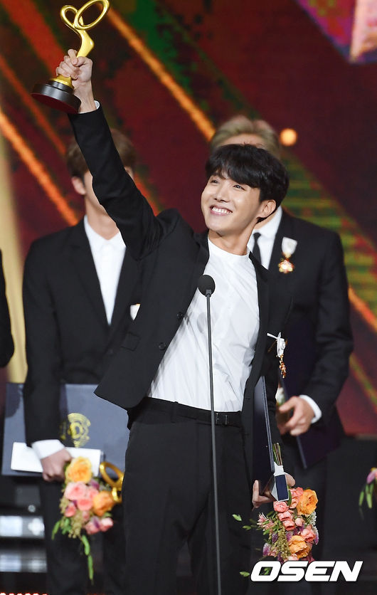 끝으로 제이홉은 "저희가 대중문화의 희망이 되고 있는 것 같아 행복하고 감사하다. 훈장이 절대 가볍지 않다. 많은 스태프들 노고와 방탄소년단의 피 땀, 전 세계 아미 여러분의 함성이 담긴 무게감 있는 상이다. 대중문화의 희망이 돼 멋지게 활동하겠다"며 멋지게 포즈를 취했다.