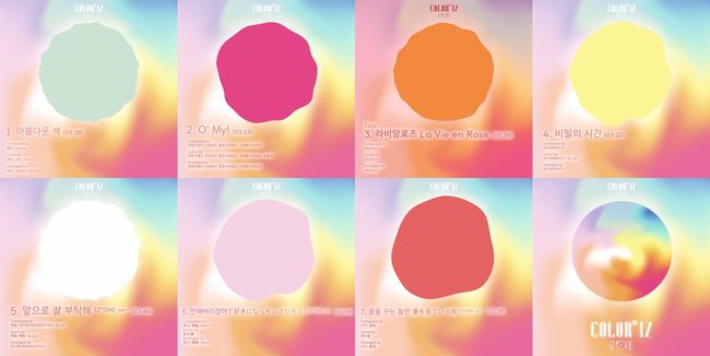멤버들의 아름다운 음색과 귀여운 랩이 돋보이는 1번 트랙 ‘아름다운 색’을 시작으로, 경쾌한 에너지로 가득한 ‘O’My!’, 파워풀한 후렴구가 매력적인 타이틀곡 ‘라비앙로즈(La Vie en Rose)’, 동화 같은 웅장한 편곡과 따뜻한 감성이 조화를 이루는 ‘비밀의 시간’까지 아이즈원의 다양한 색깔이 인상적인 4개의 신곡 일부를 미리 만나볼 수 있다.
