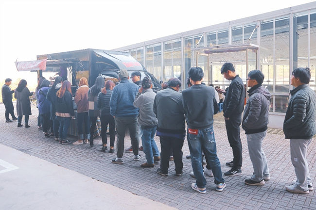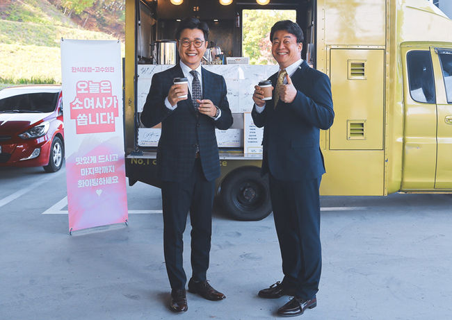 이날 촬영에 임한 스태프들은 소유진의 선물을 받고 훈훈한 분위기 속에서 촬영을 이어갔다는 후문이다. 소유진의 남편이자 '한식대첩-고수외전'에서 심사위원을 맡고 있는 백종원, 그리고 MC 김성주가 커피차 앞에서 환하게 미소 짓고 있어 흐뭇함을 더한다.