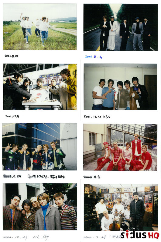 공개된 폴라로이드 사진은 2001년~2002년까지 2년 동안의 일상을 멤버들이 직접 촬영하고 작성한 사진과 일기를 모아 2003년 발간된 ‘하늘색 일기’에 수록된 이미지들로 뮤직비디오 촬영 현장, 게릴라 콘서트, 100일 콘서트, 음악 프로그램 현장 등 직접 한 장 한 장 날짜와 장소까지 적어 그때의 추억이 고스란히 남겨져 있다.