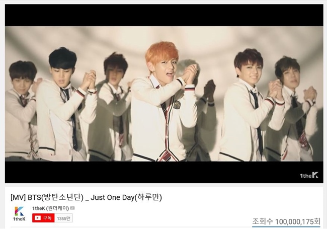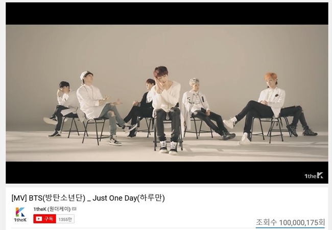 그룹 방탄소년단의 ‘하루만’ 뮤직비디오가 1억뷰를 돌파했다.