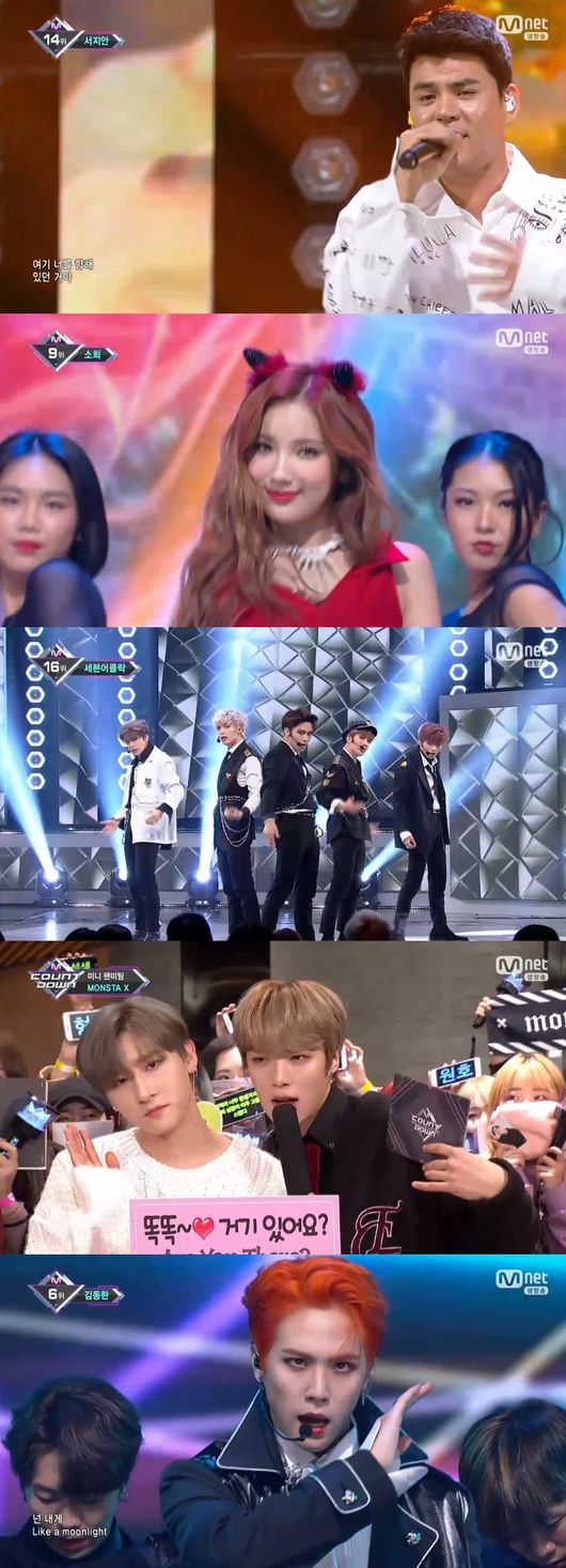 몬스타엑스는 신곡 '마이 셀프'와 인트로 타이틀곡 '슛 아웃'으로 풍성한 컴백 스페셜 무대를 완성했다. 순백의 의상을 입고 포근한 매력을 뽐냈다가 본격적인 퍼포먼스 타임에선 그 누구보다 강렬하고 터프한 남성미를 뿜어내 여성 팬들의 오감을 짜릿하게 했다.