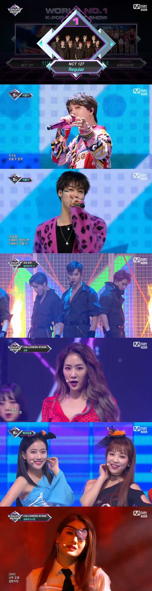 25일 방송된 엠넷 '엠카운트다운'에서 NCT127은 신곡 '레귤러'로 프로미스나인을 꺾고 1위를 차지했다. NCT127은 아쉽게 생방송에 불참했다.