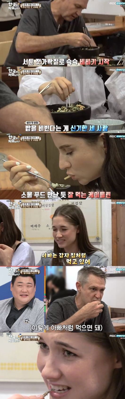 한국에서의 첫 식사는 비빔밥. 케이틀린은 채식주의자라서 고기를 뺀 비빔밥을 주문했다. 케이틀린과 가족들은 "맛있다" "정말 맛있다"고 폭풍 흡입을 했다. 하지만 '고추장'을 넣지 않은채 먹고 있었다. 직원이 와서 설명을 했고 고추장을 넣은 비빔밥을 제대로 먹기 시작했다.