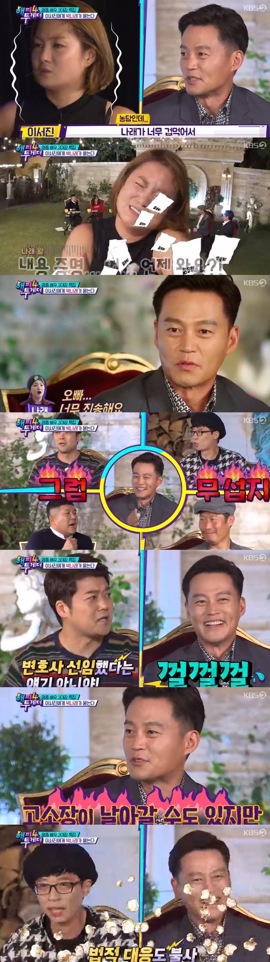 녹화에 앞서 '해투' 멤버들이 박나래에게 전화 연결을 해서 이서진에게 하고 싶은 질문을 받았다. 박나래는 "나래바에 이서진이 지인들과 왔다"며 "묵은지 김치찜을 했는데 그게 좀 오래 걸린다. 근데 정말 시간에 딱 맞춰 오셨다. '왜 김치찜이 안 나오냐'고 소문보다 별로라고. 그래서 바로 야관문주를 꺼냈다. 무슨 효과가 있냐고 하더니 그 자리에서 한통을 다 비우고 갔다"고 털어놨다.