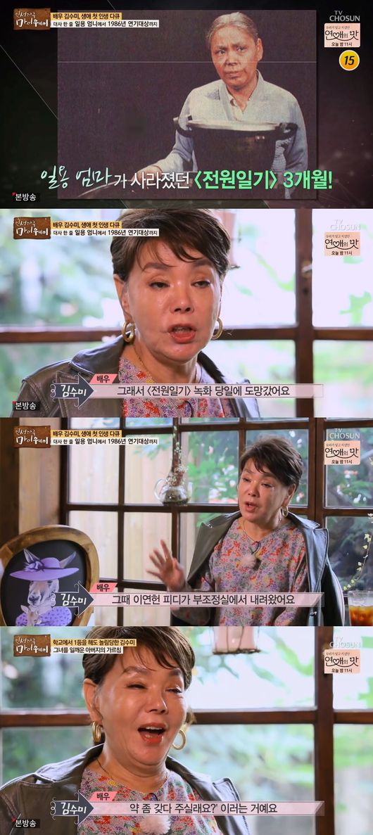 김수미의 용기는 대단했다. 장수 드라마의 대표격인 '전원일기'를 그만두겠다고 말했다. 제작진의 설득과 회유에도 김수미는 꿋꿋하게 지겨웠던 '전원일기'를 그만두겠다고 했다.