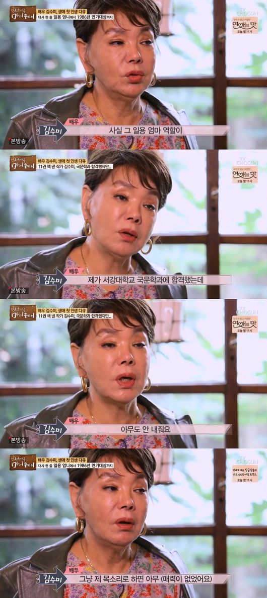 25일 오후 방송된 TV조선 '인생다큐 마이웨이'에서 김수미의 일상이 모두 공개됐다. 김수미는 작가를 꿈꾸는 문학소녀에서 배우로 살게 된 계기부터 어린 시절 아버지와의 추억까지 전부 털어놨다.