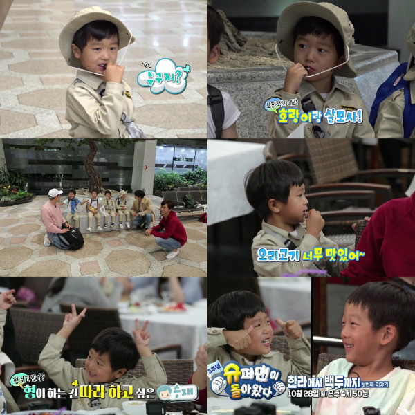 ‘해피선데이-슈퍼맨이 돌아왔다’에서는 5주년 특집을 맞아 백두산에 도전하는 승재와 이서언, 이서준 쌍둥이 형제의 만남이 공개된다. 캐릭터 가면을 쓰고 등장한 서언-서준 형제와 만난 승재는 장난기 가득한 서언이의 매력에 푹 빠진다.