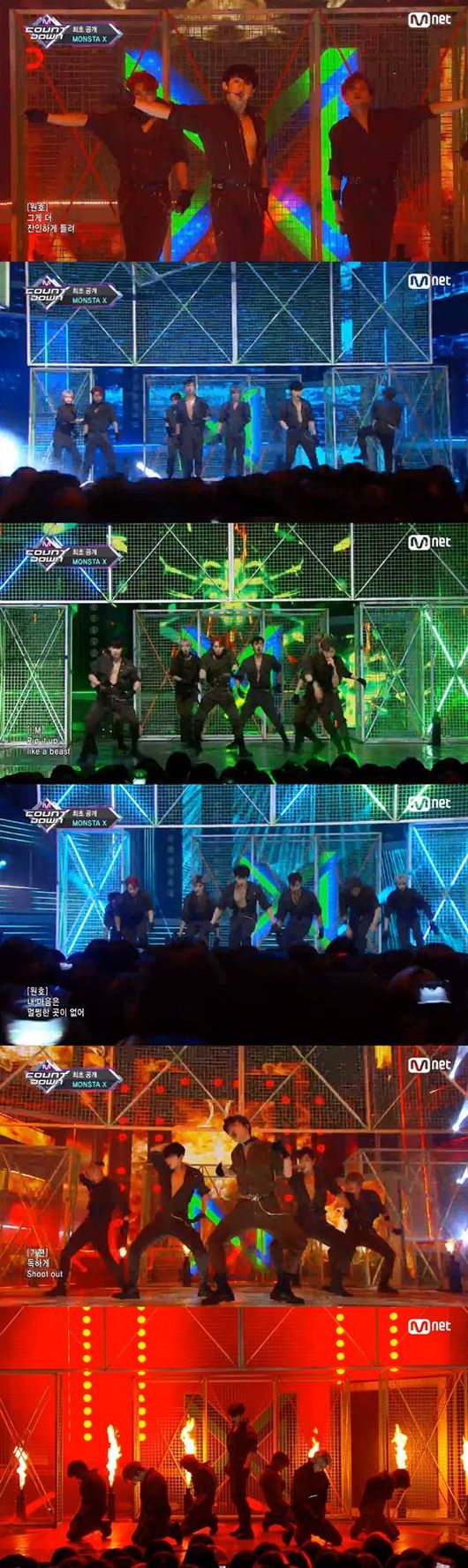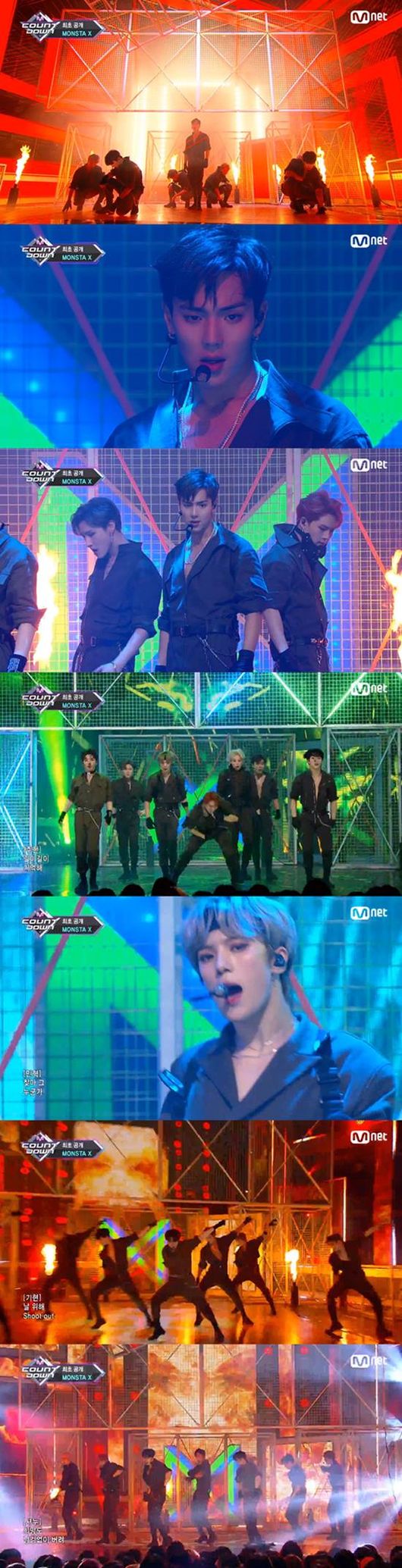 몬스타엑스는 지난 25일 케이블채널 엠넷 '엠카운트다운'을 통해 22일 발표한 신곡 '슛 아웃(Shoot Out)'의 무대를 공개했다. 이날 컴백 무대의 의상부터 퍼포먼스까지 압도적인 남성미로 몬스타엑스의 존재감을 드러냈다. 누구보다 강렬한 여운을 남기는 '역대급' 컴백 무대였다.