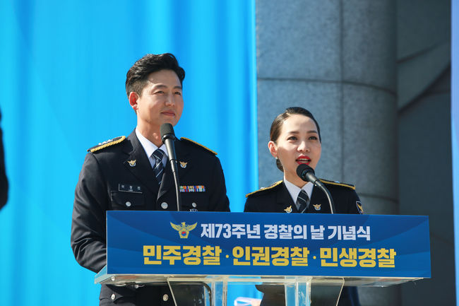 이정진은 지난 25일 제 73주년 경찰의 날을 맞아 서울 용산구 백범김구기념관 야외마당에서 열린 경찰의 날 기념식에 MC로 사회를 진행했다.