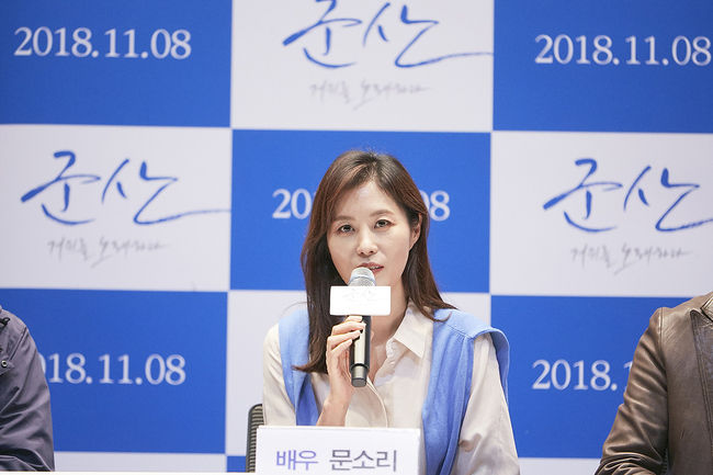 문소리는 26일 오후 서울 롯데시네마 월드타워점에서 열린 영화 ‘군산:거위를 노래하다’(감독 장률, 제작 률필름, 공동제작 백그림, 배급 ㈜트리플픽쳐스)의 언론배급시사회에서 “박해일과 함께한 첫 영화이다. 저희가 작품에서 처음 만났다고 하면 많은 분들이 ‘둘이 예전에 뭐 하지 않았느냐’고 물으시더라. 많은 분들이 저희가 다른 작품을 같이 한 느낌인가보다”라고 말했다.